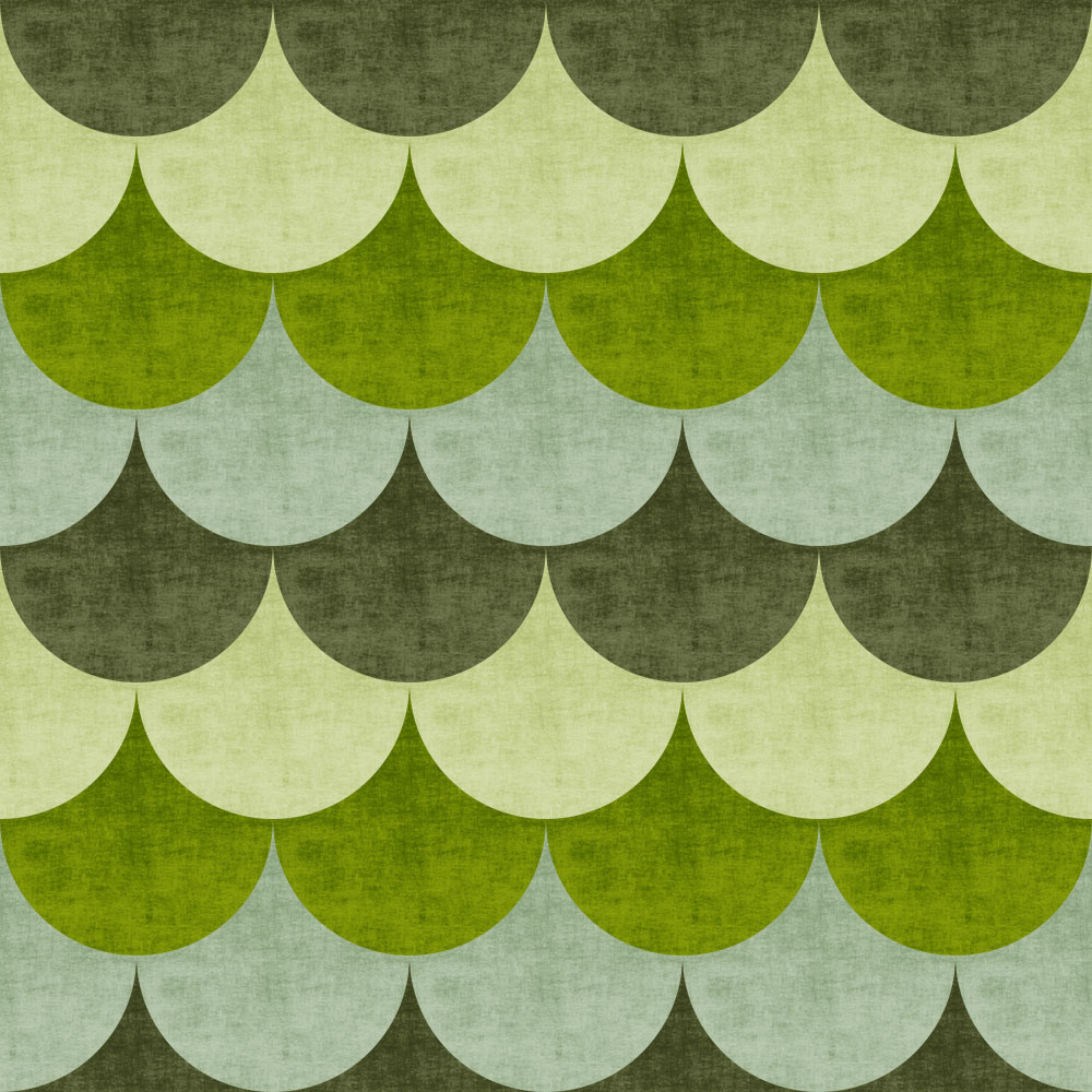 A repeating scalloped pattern in layered shades of olive, sage, and moss green creates a textured, scale-like design with an earthy, organic feel.