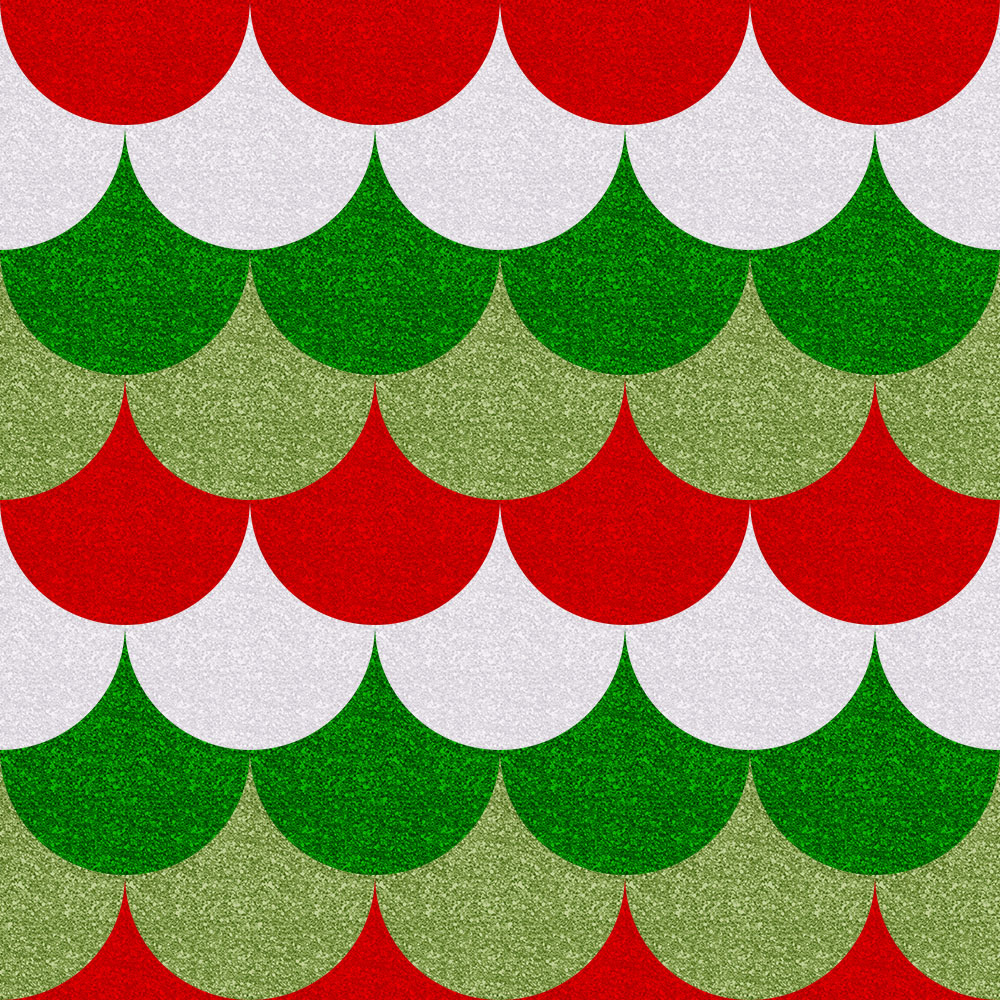 Christmas mermaid, a festive scalloped pattern alternates in glittering red, white, green, and gold segments, creating a shimmering holiday-inspired design.